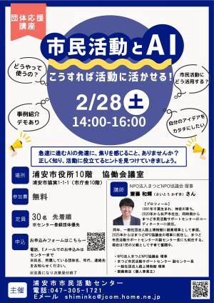 団体応援講座「市民活動とAI こうすれば活動に活かせる!」参加者募集