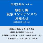 紙折り機の不具合による緊急メンテナンスの為、本日より紙折り機の利用ができません。