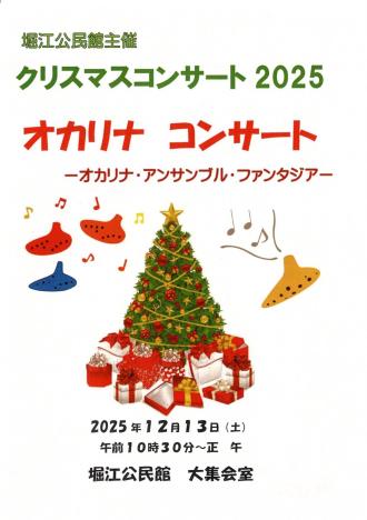 公開日:2025年12月21日堀江公民館クリスマスコンサート12月13日(土曜日)に堀江公民館において「クリスマスコンサート」の演奏活動をしました。
