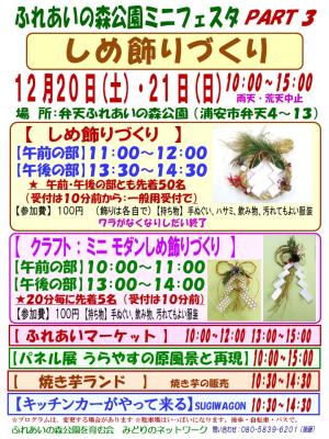 開催日:2025年12月20日(土)~12月21日(日)開催時間:10:00~15:00マイしめ飾りを作って新年を迎えましょう!ミニモダンしめ飾りにもトライしてください。