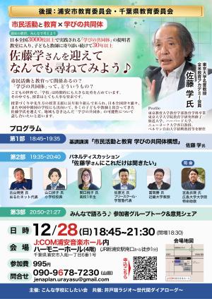 開催日:2025年12月28日(日)開催時間:18:45〜21:30 開場:18:30佐藤学氏を迎えて 講演+パネルトーク+皆んなで語ろう! 12月28日(日) 18:45〜.21:3...